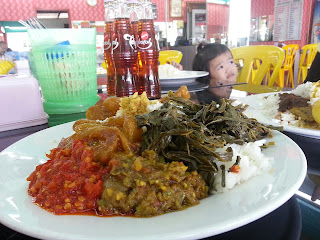 Semalam berbuka puasa kat Garuda Baru Nasi Padang, Greenwood. Teringat plak kenangan makan nasik padang kat Balik Papan, Indonesia. Kat sana makan hidang. Banyak lauk akan diletakkan atas meja. Kalau kita cuit sikit je lauk kat pinggan tu, kena bayar untuk harga satu pinggan. Kat Malaysia jarang orang praktis makan macam ni.