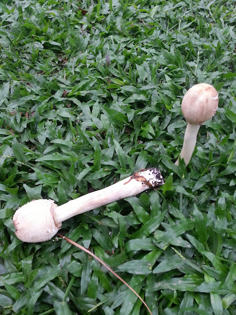 Musim hujan ni memang banyak cendawan tumbuh. Ada yang boleh dimakan, ada yang tidak boleh malah beracun. Kalau kat kampung Admin, nama cendawan ini ialah 'Kulat Taun' @ 'Kulat Tahun'. Juga dikenali sebagai 'Cendawan Petir'. Biasanya bila tumbuh sekali banyak. Tapi di Wangsa Maju ni Admin perati cendawan jenis ini tumbuh sedikit tapi merata-rata. Ini gambar perbezaan satu hari. Bila dah kembang jadi keras jadi tak sedap atau dah tak boleh dimakan.
